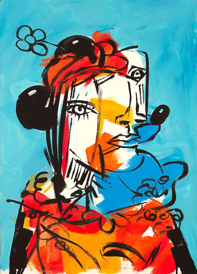 Cartoons often dispense with literal logic, speaking instead through rhythm, line, and colour. A Picasso deconstruction functions similarly. His paintings reinvent reality, twisting and fragmenting it until form and content are indistinguishable, and yet the work holds together through an internal visual harmony. Picasso was constantly changing his language to keep pace with his shifting vision — a process that makes it nearly impossible to separate his medium from his message. Pisney takes this restless spirit and places it in conversation with the endlessly self-replicating Disney universe — where every image can be redrawn, resold, and reanimated indefinitely.